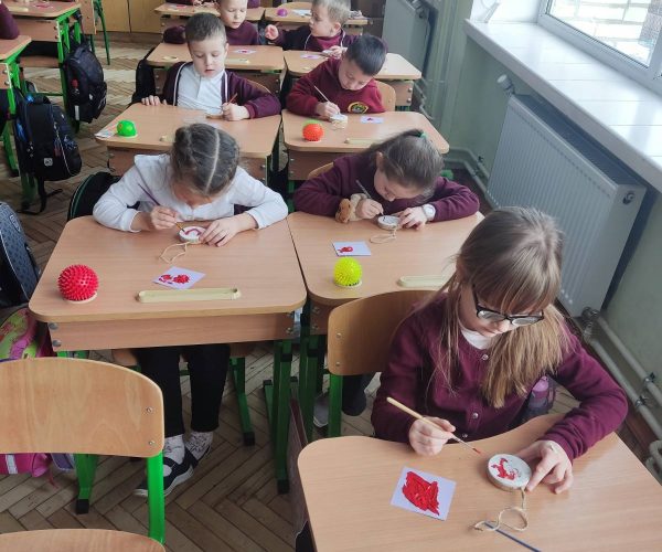 Учні 1-Б класу( класовод Біда С.Б.) долучилися до творчого та надзвичайно теплого майстер-класу з розфарбування сердечок на дерев’яному зрізі до Дня Валентина