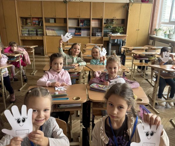 Виконували веселі вправи на зняття напруги. Ми вчимося, що школа — це не лише парти, а й активний рух та позитивні емоції.
