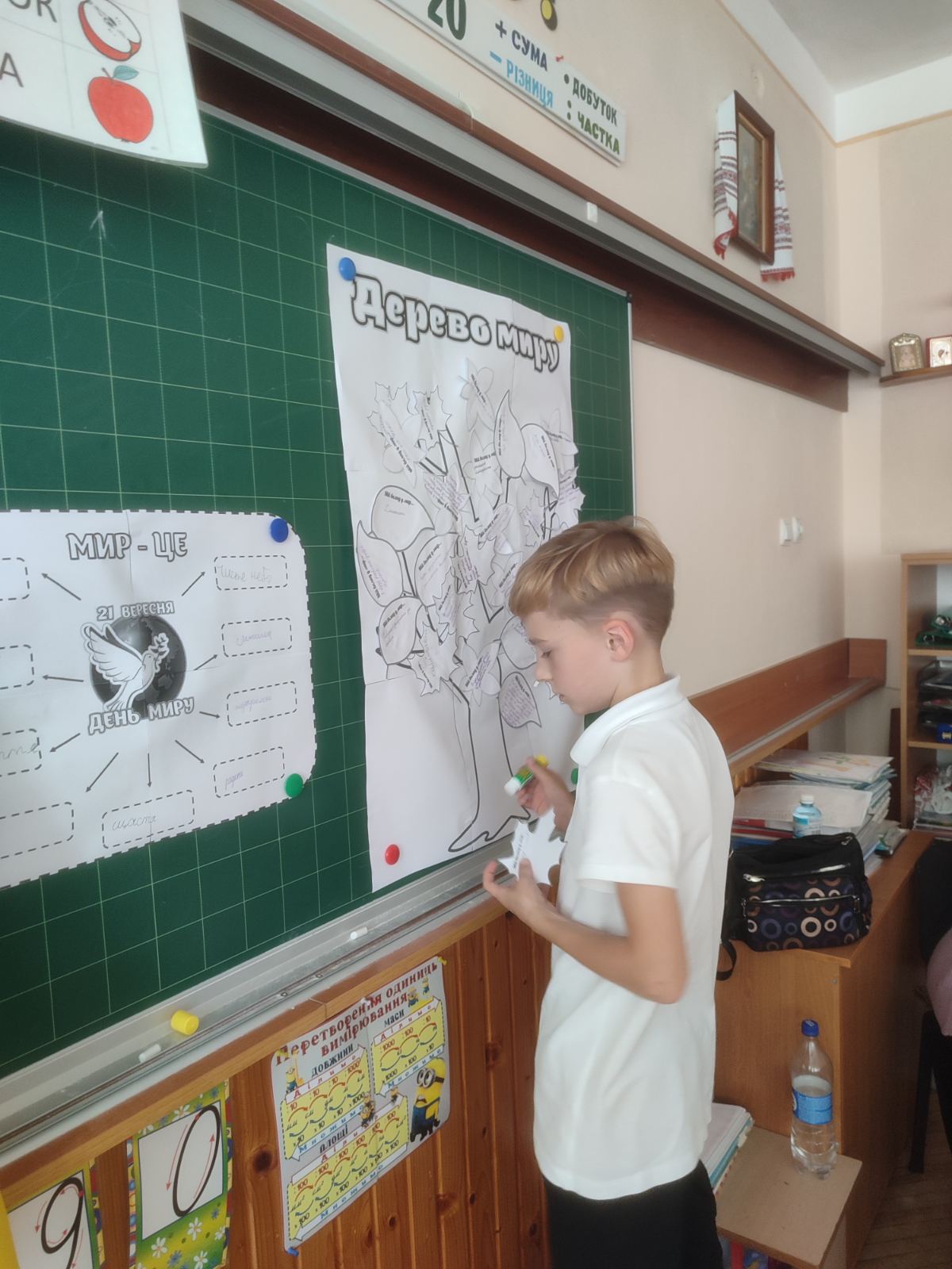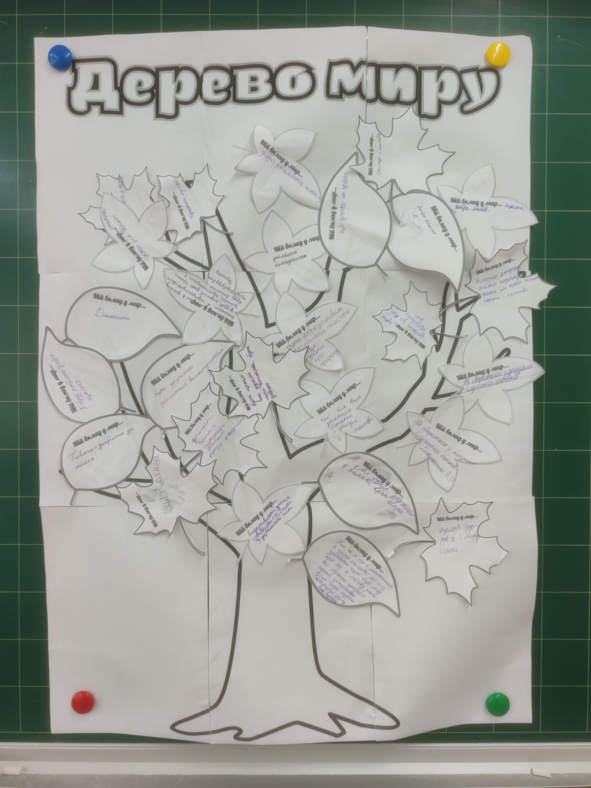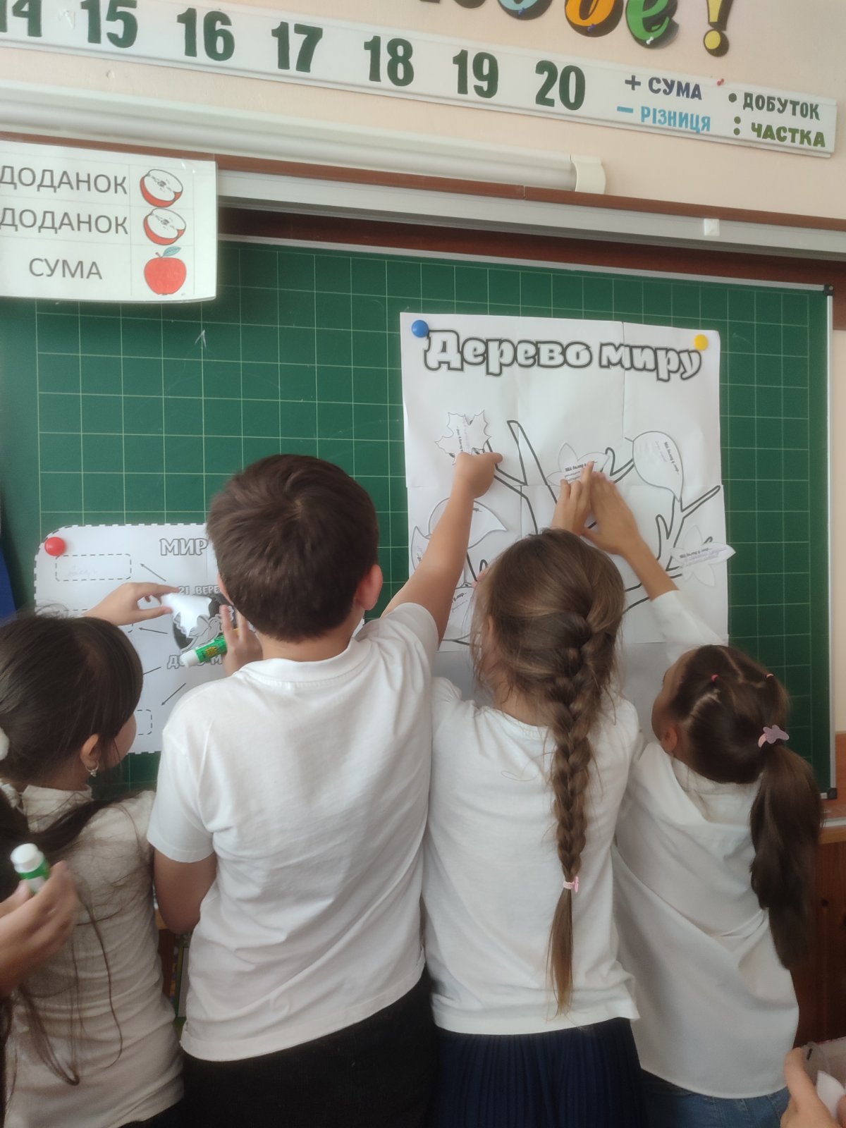 Учні 4-А класу активно брали участь в інтерактивному заході і створили спільне Дерево миру, де вказали який їхній вклад у мир. А ще приєдналися до марафону #ТанецьЄдності – танцюємо, бо разом ми сила, разом ми Україна!!!