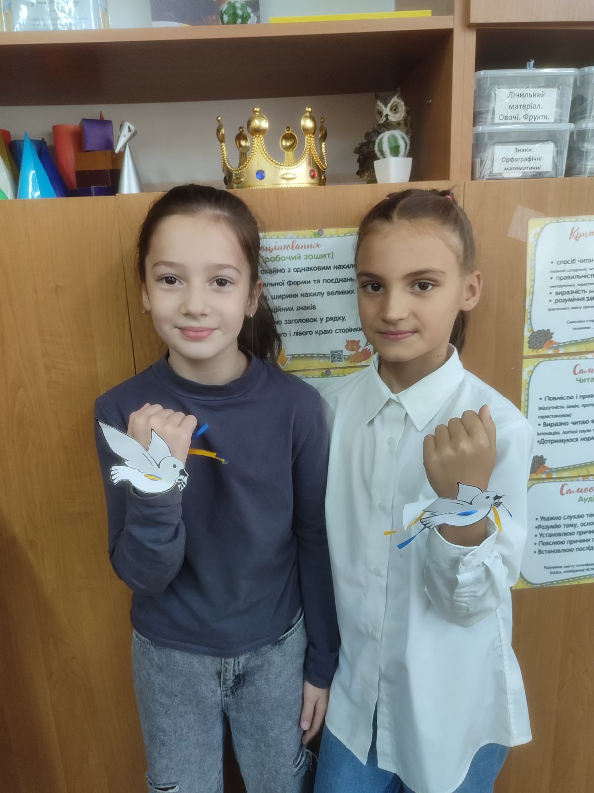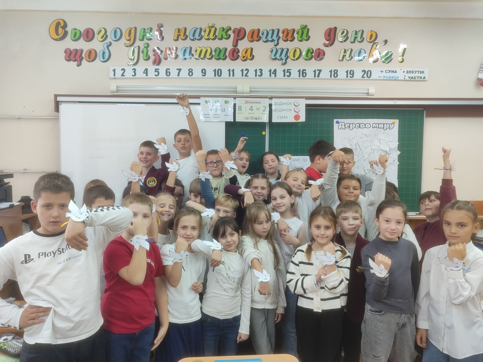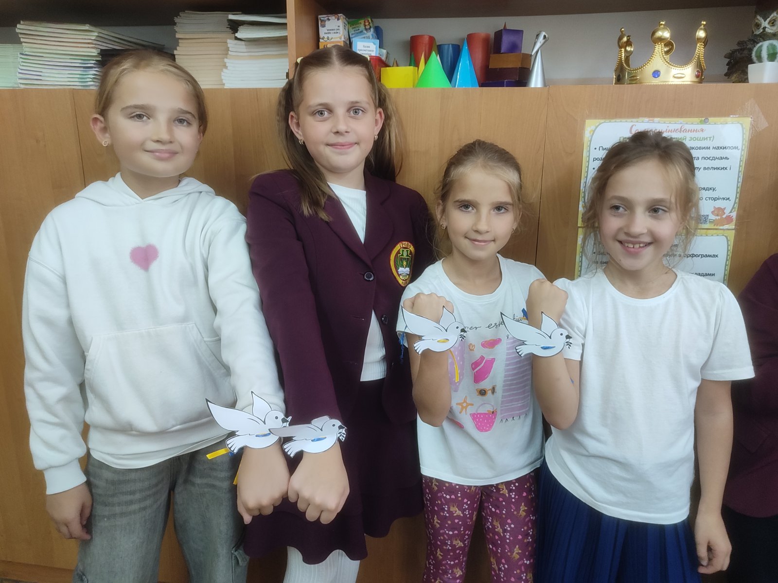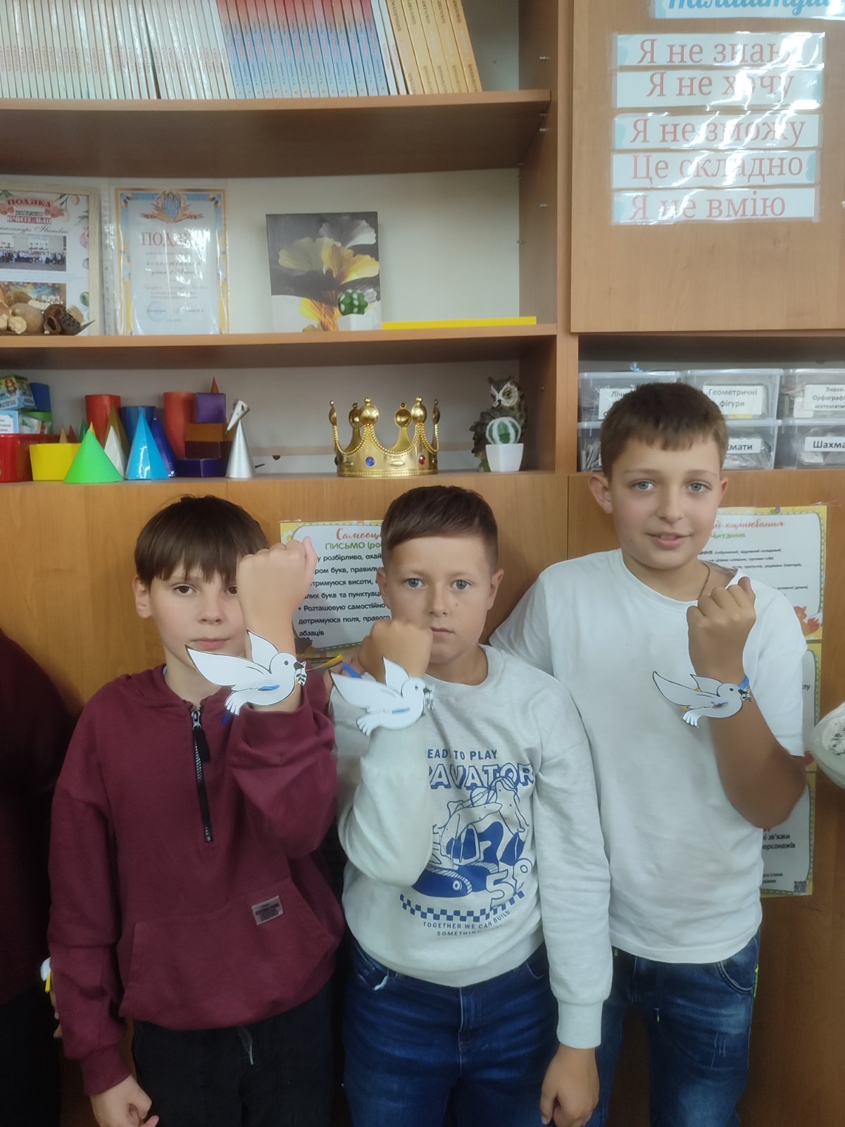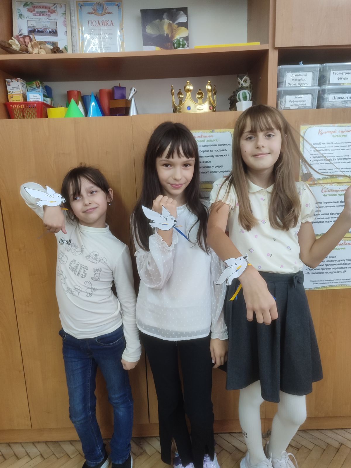 Третьокласники виготовили паперових голубів та створили з них оберіг, який символічно захищатиме нашу Україну.