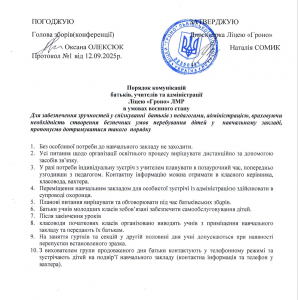 Для забезпечення зручностей у спілкуванні батьків з педагогами, адміністрацією, враховуючи необхідність створення безпечних умов перебування дітей у навчальному закладі, пропонуємо дотримуватися такого порядку